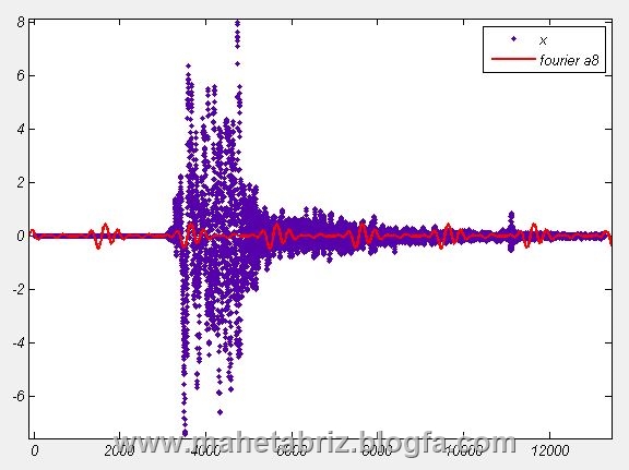 شتاب نگاشت زلزله بم و طبس به همراه برازش فوریه a8 در Matlab